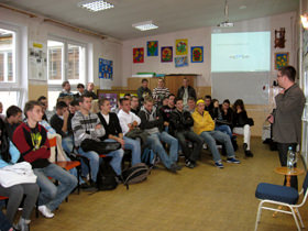 "Spotkanie przeprowadzone przez Pana Tomasza Ziajka miało przybliżyć uczniom zasady funkcjonowania nowoczesnej firmy informatycznej. Młodzież została podzielona na grupy zgodnie z jej predyspozycjami osobowymi-umiejętnościami, zainteresowaniami, kompetencjami. Utworzona firma symulacyjna ,którą zarządzali uczniowie zajmowała się tworzeniem tematycznych serwisów internetowych. Projekt polegał na stworzeniu serwisu internetowego dla Plantatora Ogórków. Poszczególne działy firmy miały przygotować pełną ofertę z wykorzystaniem najnowszych technologii informatycznych. Po wykonaniu projektu nasz gość przeanalizował zrealizowane zadanie z uczniami, podkreślił pozytywne rozwiązania koncepcyjne zespołu oraz zasugerował uczestnikom to, co powinni uwzględnić w projekcie, ażeby oferta zaspokoiła potrzeby oferenta. Uzmysłowił młodzieży również, że istotną kwestią w pracy informatyka jest posiadanie kwalifikacji kierunkowych. Niemniej jednak kluczowymi kompetencjami w tym zawodzie jest posiadanie umiejętności "miękkich" ,takich jak: współpraca w grupie, umiejętności komunikacyjne, odporność na sytuacje stresowe, umiejętność szybkiego uczenia się. „Metoda projektu uwzględniająca zadania problemowe rozwija twórcze myślenie oraz angażuje wszystkich uczniów do pracy i nauki i stanowi podstawę nabywania umiejętności zawodowych - podkreśla doradca zawodowy Jolanta Senkowska."