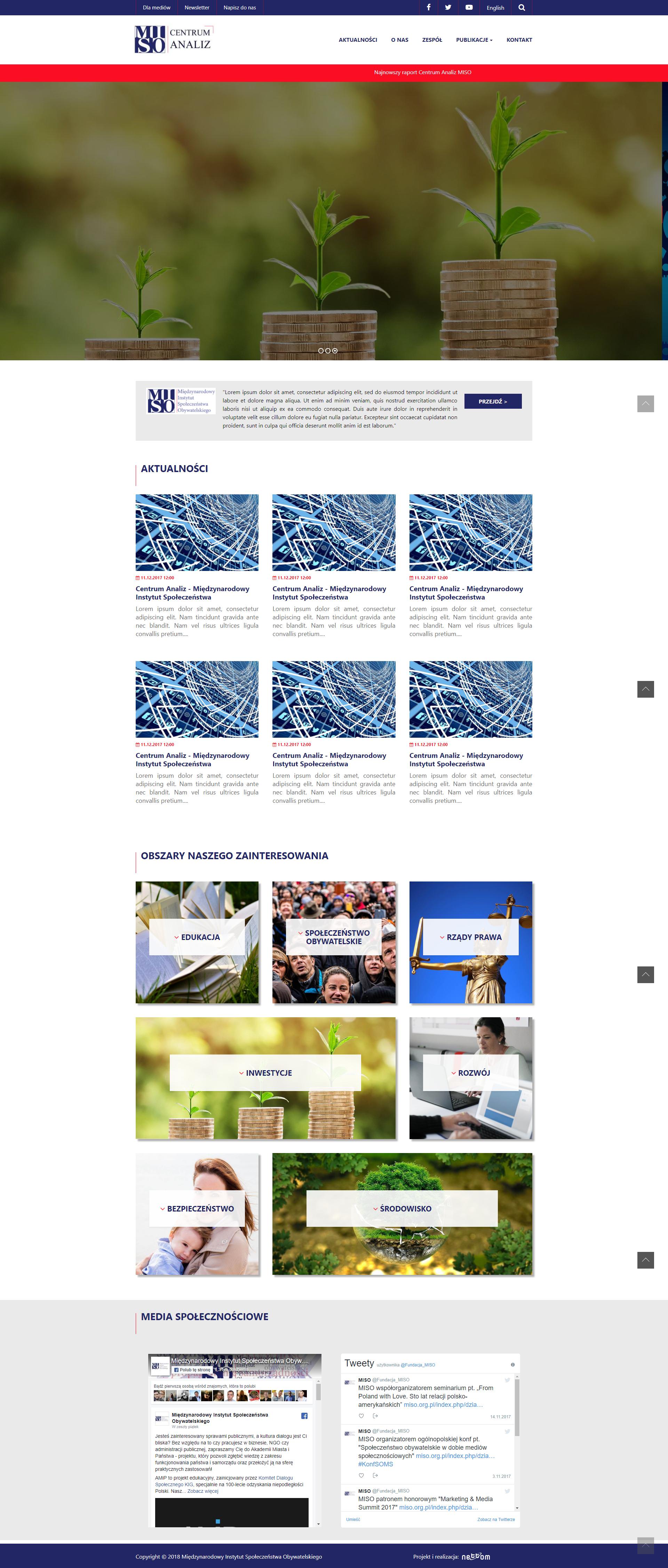 Wykonanie serwisu internetowego dla stowarzyszenia Międzynarodowy Instytut Społeczeństwa Obywatelskiego MISO.