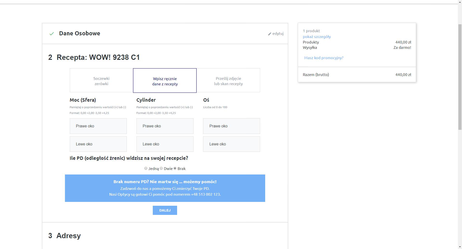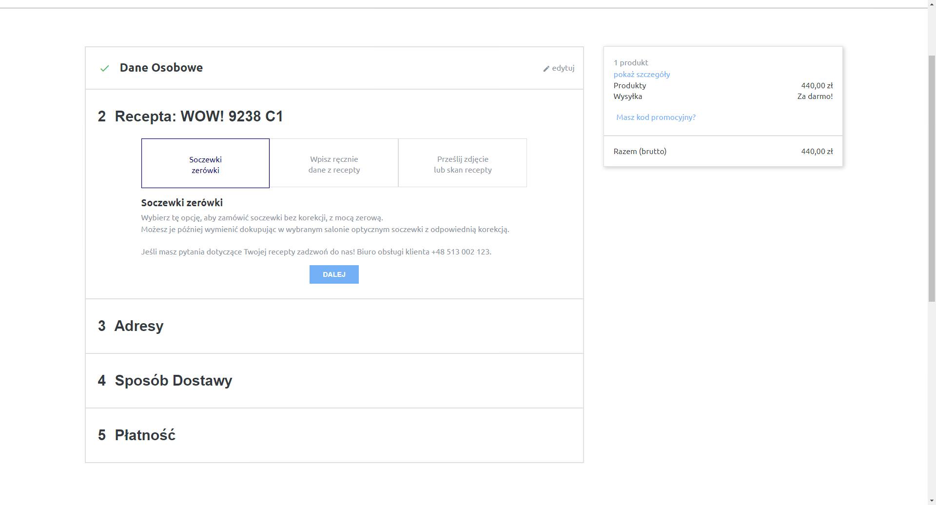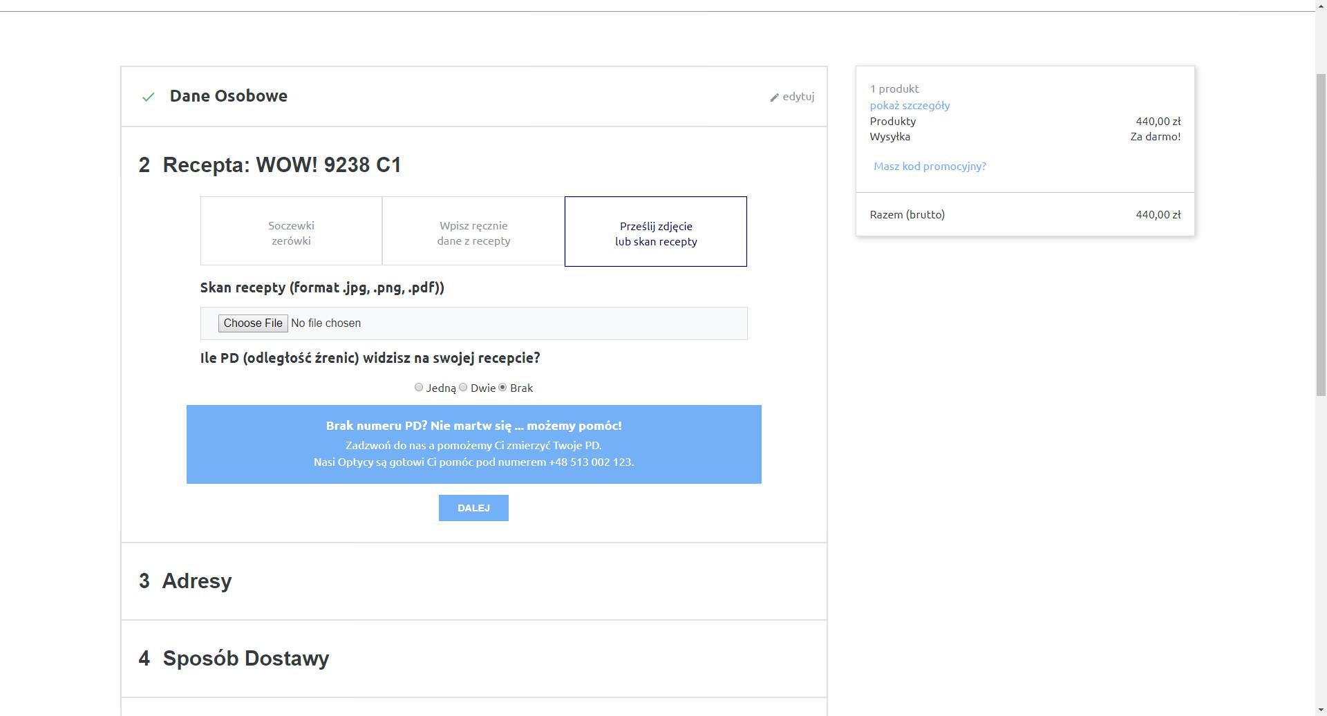 -- załączanie skanów recept (w przypadku okularów korekcyjnych)