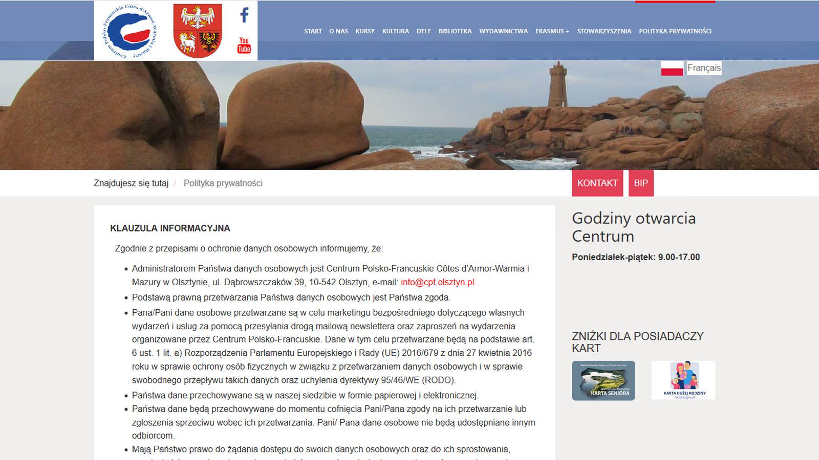 Na stronie Centrum Polsko-Francuskiego w Olsztynie dokonaliśmy szereg zmian optymalizacujących stronę.