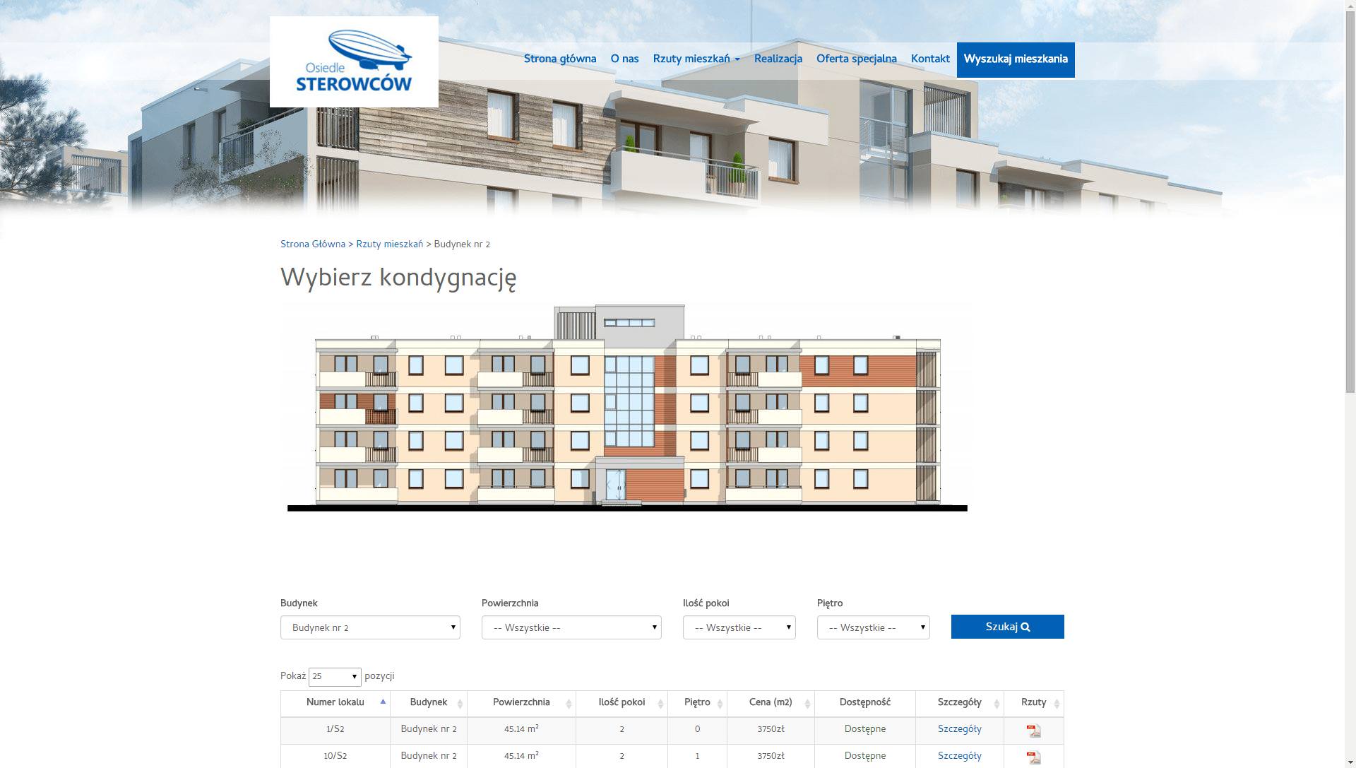 • Dwie zaawansowane wyszukiwarki z rozbudowanymi opcjami filtrów umożliwiają filtrowanie informacji na temat mieszkań dla przyszłych klientów