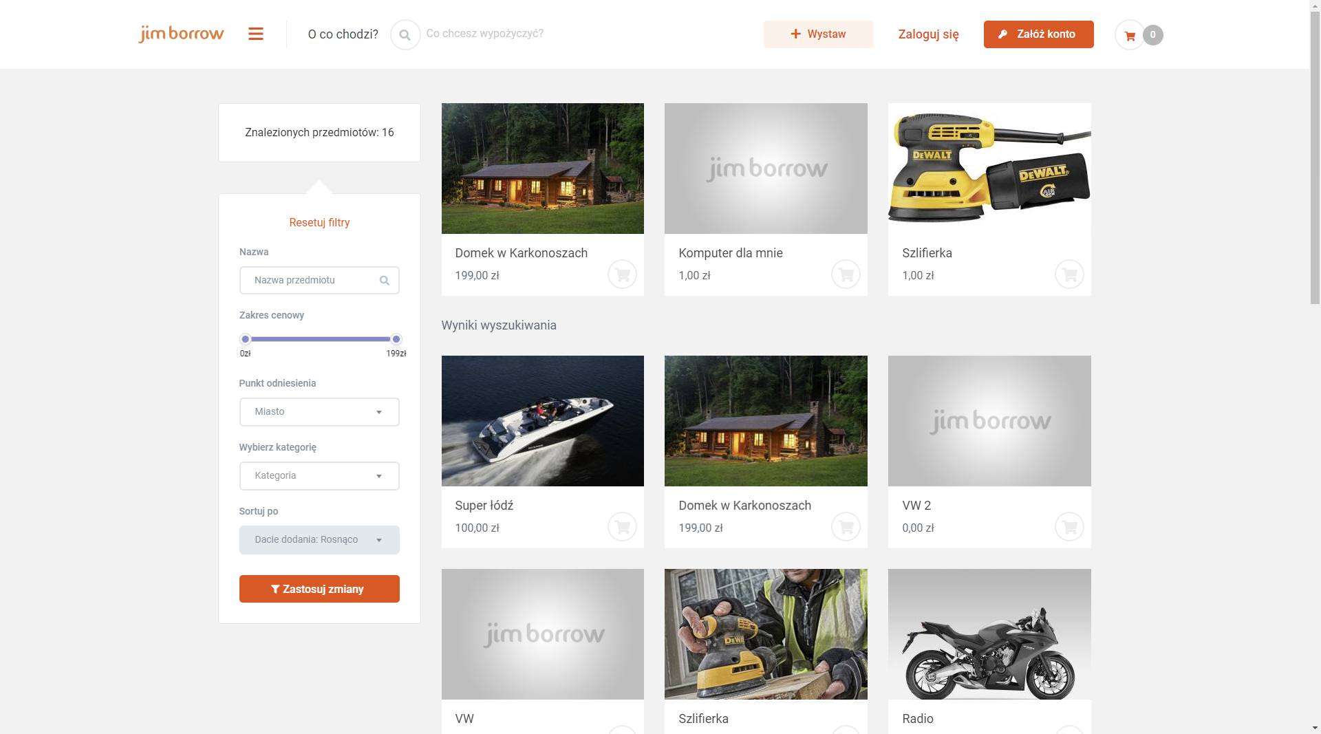 Platforma wynajmu przedmiotów - Jimborrow