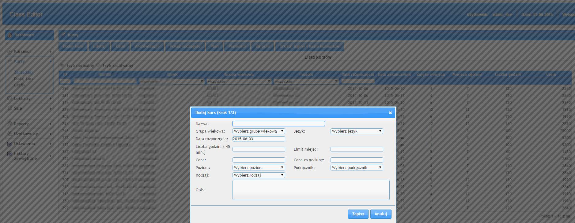 Class Editor jest kompleksowym systemem do zarządzania działaniem szkoły lub placówki edukacyjnek o dowolnym rozmiarze. Za jego pomocą można równie łatwo kierować pojedynczą szkołą, jak również całą siecią filii. Jest w pełni internetowy, bezpieczny i intuicyjny w obsłudze, pozwala w prosty sposób kontrolować działalność szkoły z dowolnego komputera i miejsca na świecie.